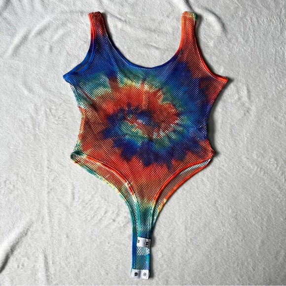Net thong bodysuit with rainbow tie dye color. Bought from dolls kill but tag says brand is ÜÖ. Never worn. Size L.