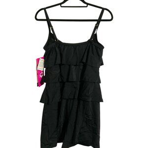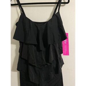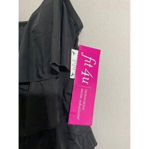 FIT 4U New Hip Hider Black Tiered Ruffle Swimsuit Romper size 12