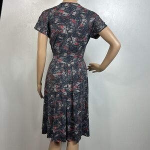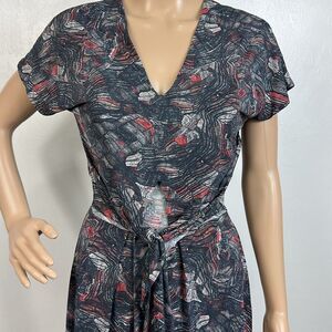 FIT Elegant Abstract Print Short Sleeve V-neck Belted Dress Size S