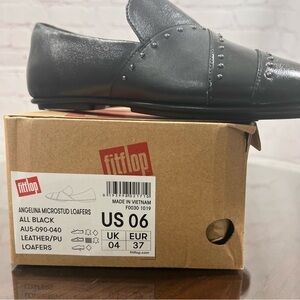 FITFLOP Angelina Microstud Loafer. Black leather with gunmetal studs in size 6
