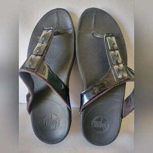 Fitflop black sandals with trio gems down the front. The sandals are in very good condition. Please see all pictures.