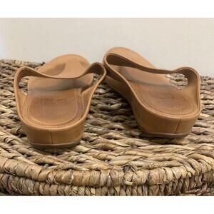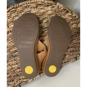 FITFLOP Banda Wedge Thong Sandals Women's Light Brown Leather Comfort - US 9
