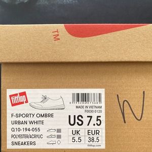 FITFLOP F-Sporty Ombre Womens Sneaker, Urban White, Size 7.5, NEW