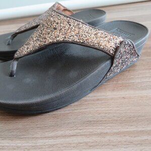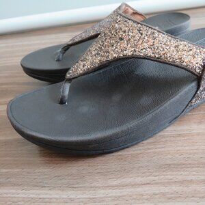 FITFLOP Lulu Chocolate Metallic Glitter Flip Flop Thong Sandals - Size US 7