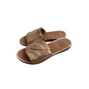 FITFLOP Rose Gold Leather Feather Cut Slide Sandals Size 8