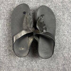 FITFLOP Women’s Black Fino Feather Toe-Post Wedge Sandals size: 8