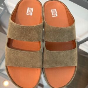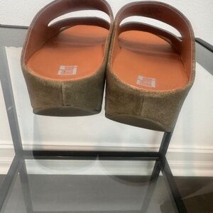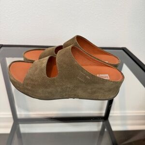 FITFLOP Women’s Olive Green Shuv Two Bar Suede Slide Sandals Size 7. Pre loved but in excellent condition.
