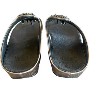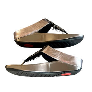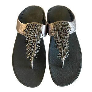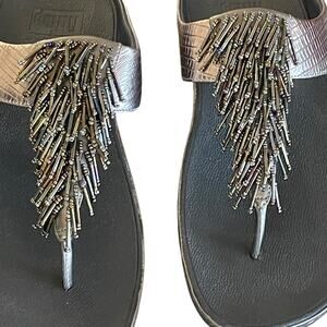 FITFLOP Women's Size US 10/EU 42 Beaded Pewter Slip-On Comfort Flip-Flop Thong Toe Post Sandals. Eye-Catching Multi-Tonal Chandelier Fringed Beads. Cushioned Comfort. Microwobbleboard. 336-289. Excellent Condition. Ships within 24 hours.