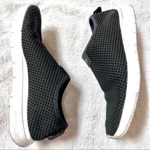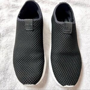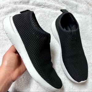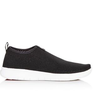 knitted, logo, solid color, round toeline, flat, fully lined, rubber cleated sole.