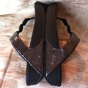 Wear jewels head to toe with foot-flattering FitFlop Petra sandals. They have elegant, slimline straps and a decorative three-stone upper. FitFlop Petra dressy sandals in pewter are built on amazing ergonomic, lightweight, super-cushioned Microwobbleboard midsole technology.