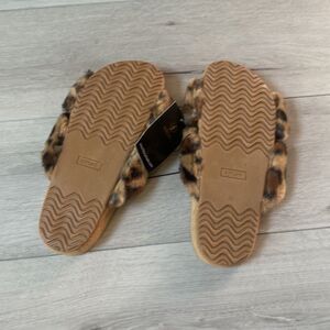 FITORY Womens Open Toe Slipper w/ Cozy Lining,Faux Rabbit Fur Cork Slide leopard