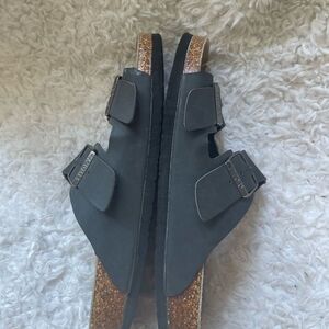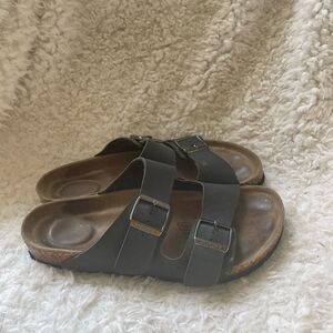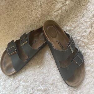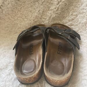 FITORY Men’s Leather insole Sandals with two buckles open toe slides SandalsSZ8 . Pre owned in FAIR used condition because there is a small tear on the side of the sandals they are glue back together not affecting the looks at all see all pictures any questions please message.see measurement for size accuracy.
