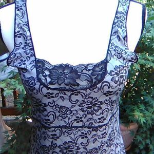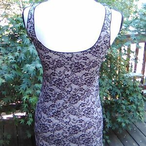 This could be a dress, showing on my size 6 mannequin. It could be a nightie, or a slip. The fabric is printed, but looks like lace and real lace at the neckline. Size XL hmmm, measures 34 at chest, 32 at waIst, 36 at hips, 38 long from shoulder to hem. I'm calling this a small. This is designed to pull you IN.