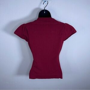 FITTED MAURICES RED KNIT TOP RETRO PINUP STRETCH MEDIUM VNECK