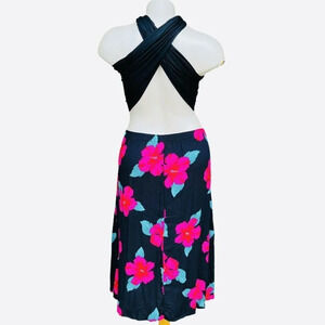 FITTING IMAGE Women’s 14-16 Black Hibiscus Floral Vintage Peasant Midi skirt
