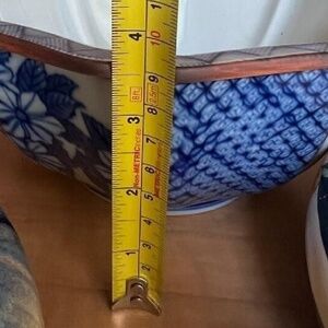 FITZ AND FLOYD Japan Octagon Vegetable Bowl, Ceramic Blue & White w/ Brown rim