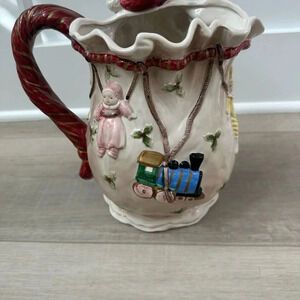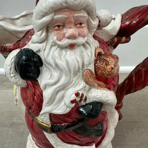 FITZ & FLOYD FF CHRISTMAS SANTA PITCHER HAND PAINTED 2 QUART