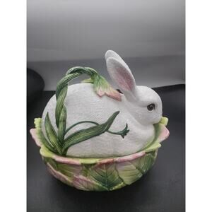 FITZ & FLOYD "Le Lapin" Large Oval Covered Vegetable bowl