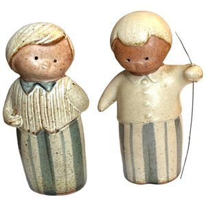 FITZ & FLOYD Pair of Vtg UCTCI Stoneware Pottery Children Salt & Pepper Japan