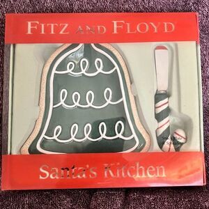 FITZ & FLOYD Santa’s Kitchen Snack Plate & Spreader, NIB!