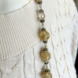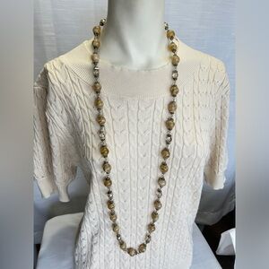 A chic necklace featuring warm golden beads and sparkling crystal accents, creating a sophisticated look for any occasion. Can be worn double (wrapped) or single-strand.