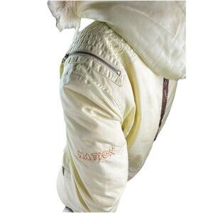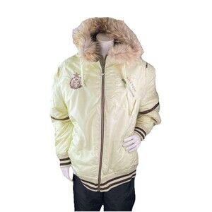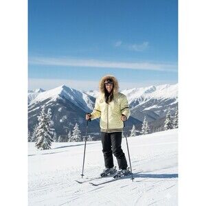 The FIVE FOUR LA Down Feather Puffer Snow Ski Jacket is a stylish and cozy winter jacket designed for women in size XXL. Made with polyester outer shell material and insulated with warm down feathers, this mid-length jacket features a zip closure and real fur trim accents for added flair. The beige color and fox-themed design make it a fashionable choice for cold weather, while the regular fit ensures comfort and easy movement. Perfect for skiing or everyday winter activities, this jacket from the brand Five Four is a must-have for staying warm and chic during the colder seasons.