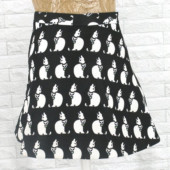FIVE PLUS Skirt Skater Cat Print Mini Black with White Embellished X-Small