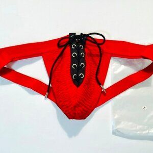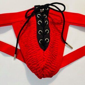 FIZX Mark by Undergear Solid Knit Lace-up Athletic Supporter/Jock - Red/ Black