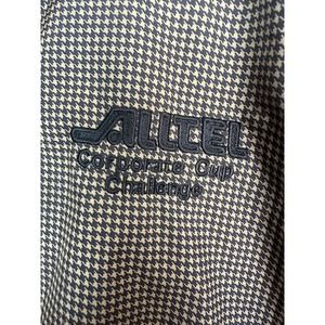 Stay dry and comfortable on the golf course with this stylish FJ DryJoy Rain Jacket. The jacket, made from blended fabric, features a classic brown check pattern and has a 1/2 zip closure. It is designed with the golfer in mind, with accents such as the logo and the FootJoy product line.