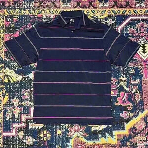 FJ FOOTJOY shirt Golf POLO Mens, Collared,‎ Size Small Navy Red, White Stripes