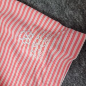 FJ FootJoy Golf Polo Shirt Mens L Large Performance Pink Gray White Striped Good Condition Personalized Sewell Golf Classic See Pictures For More Details.