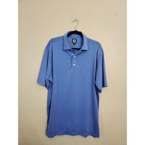FJ FootJoy Mens Blue Pink Stripe Short Sleeve Stretch Golf Polo Shirt Size Large