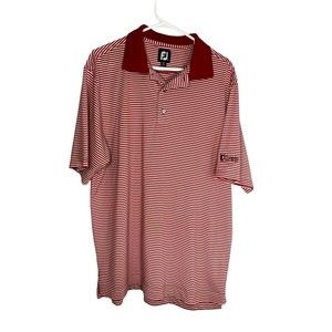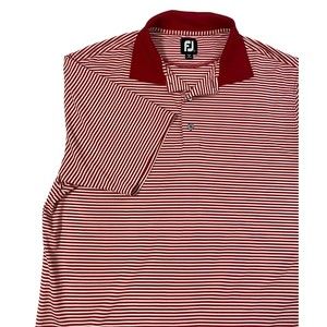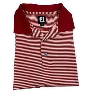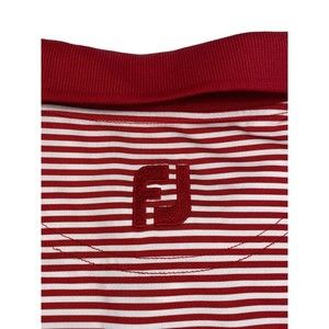 FJ FootJoy Men's Size L Red White Stripe Moisture Wicking Golf Polo Shirt