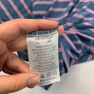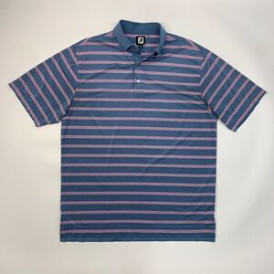 FJ FootJoy Shirt Mens L Large Blue Pink Striped Short Sleeve Golf Golfing Polo