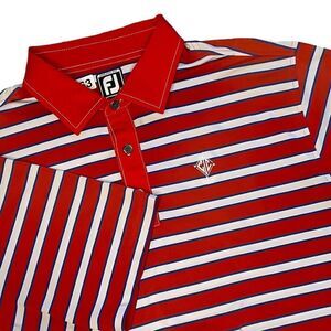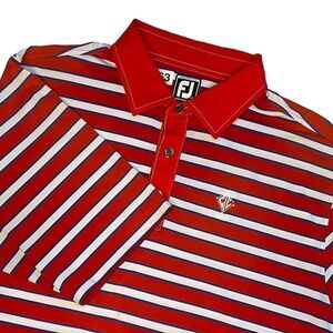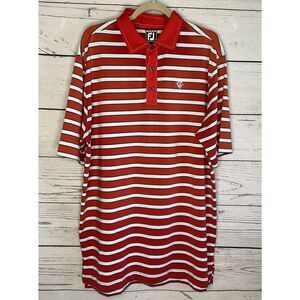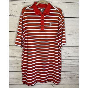 FJ Footjoy Mens Orange Red Striped Golf Performance Polo Shirt Size XL.
