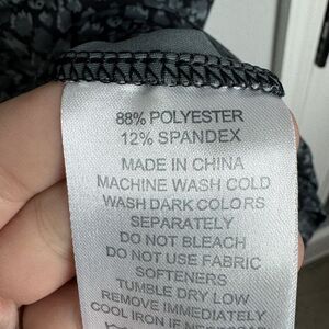 This FJ Footjoy women's black and gray animal print performance golf polo shirt in size M is a stylish and functional piece suitable for activewear and casual occasions. Made from a blended fabric of polyester and spandex, it features moisture-wicking and stretch properties, making it ideal for golfing in the summer, fall, and spring seasons. The shirt has a collared neckline with a button closure, short sleeves, and a regular fit, perfect for those who enjoy sports-themed clothing. Machine washable and easy to care for, this polo shirt is a practical and fashionable choice for women golfers.