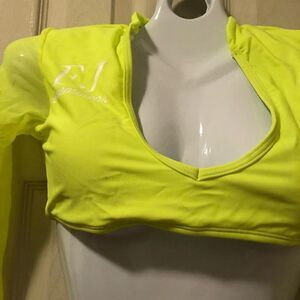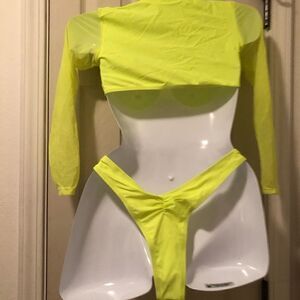 FJ swimsuit Mesh long sleeve plunging Neck Brazilian bikini set - neon