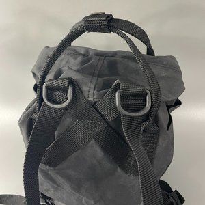 This backpack features 1 main compartment, 1 front zip pocket, 2 canvas handles, 2 side pockets, and supple shoulder straps.