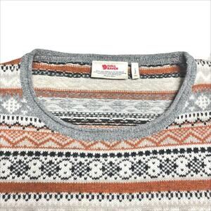 FJALLRAVEN Ovik Folk Knit Fair Isle Wool Sweater Size XL Cream Gray Brown