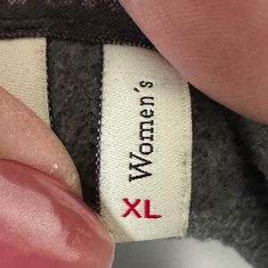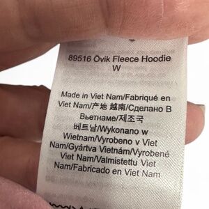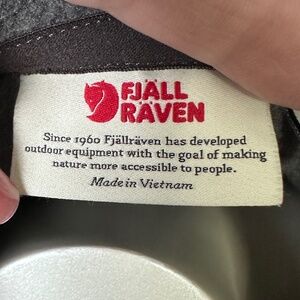 Nice well-made FJALLRAVEN women's XL Ovik fleece hoodie with cream pulls and natural leather trim on hoodie and zipper pulls.