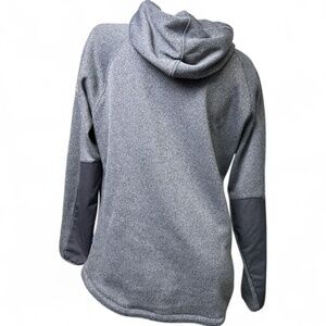 FJALLRAVEN Women Ovik Fleece Hooded Jacket XL Slate Grey Full Zip Leather Trim