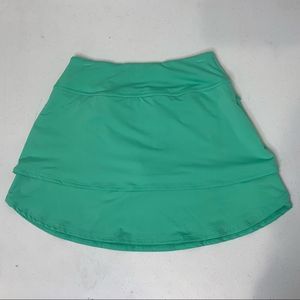 This FJ skirt is so cute and flattering! Brings activewear to a fabulous level! Features 3 pockets and built in shorts! In person it's more of a sea foam green color. Ready to ship!