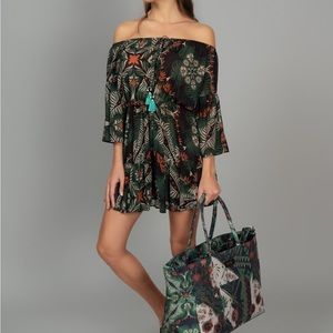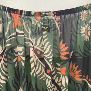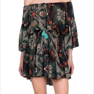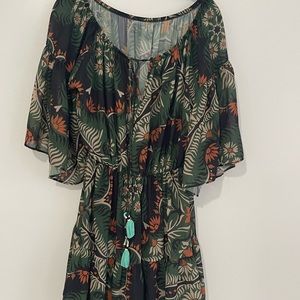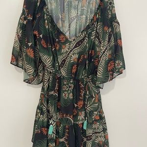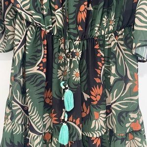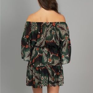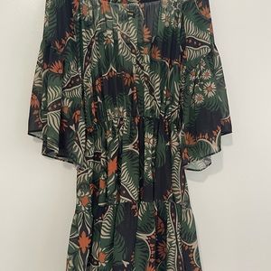 Description : short dress in patterned chiffon fabric.
