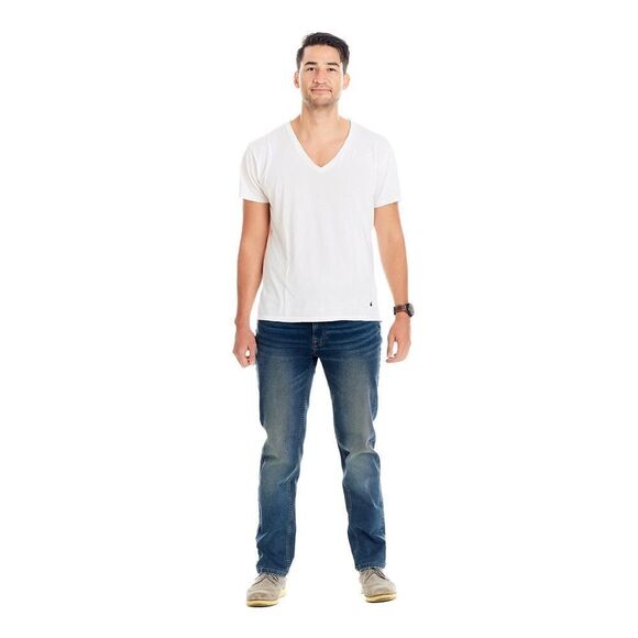 • Sits at the middle of the waist and has a generous fit through hip, thigh & knee