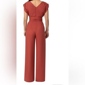 Step out in style with this elegant rust jumpsuit. Perfect for any occasion, it offers a flattering fit and a chic design. A must-have addition to your wardrobe. In good condition.