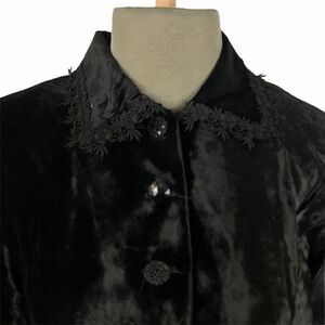 F.L. Malik Jacket & Skirt Set Black Velvet Size M Collared Lace Trim Holidays