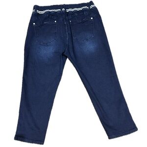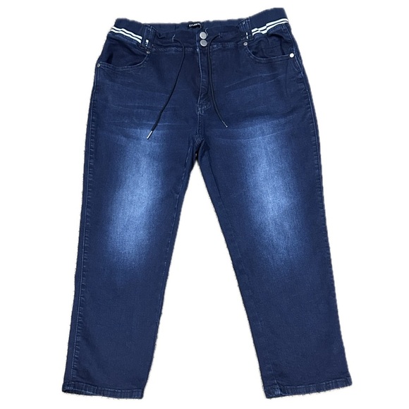ππ FLAMINGO Cropped Jeans | Striped Waist Drawstring Stretch Bleach Wash Sz 2X