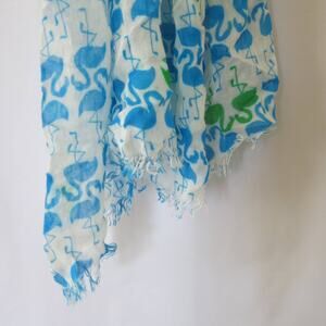 FLAMINGO Scarf Women's Light Weight Fringe White Green Blue 20x71 Beach Summer
