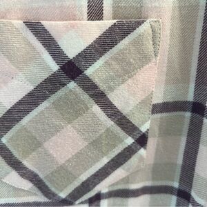 Beautiful lightweight supersoft FLANNEL AUSTRALIA pastel pink and tones of gray, white plaid, luxurious flannel shirtdress. Perfect for spring .