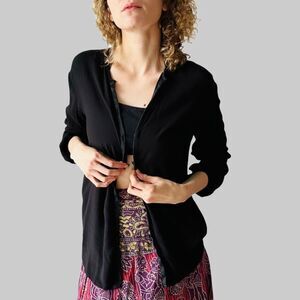 The FLANNEL Black Button-Up Blouse is where romantic detail meets minimal cool—because a little lace never hurt anyone.